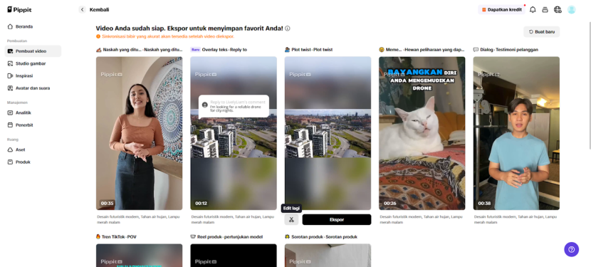 Saat membuat video dengan AI, Pippit menyediakan berbagai pilihan filter glow gratis sesuai gaya yang kamu inginkan. Intensitas, warna, dan penyebaran cahaya bisa diubah mengikuti visi kreatifmu. AI akan menganalisis pencahayaan, kecerahan, serta komposisi untuk menempatkan glow dengan maksimal. Kamu bisa menambahkan glow tipis untuk tampilan elegan atau cahaya neon terang agar lebih mencolok. Efek glow juga dapat dilapisi dengan teks, transisi, atau efek lain untuk membuat narasi visual yang lebih kompleks. Semua ini bisa kamu lakukan dengan mudah tanpa harus mengutak-atik banyak detail, tetapi tetap menghasilkan kualitas profesional.